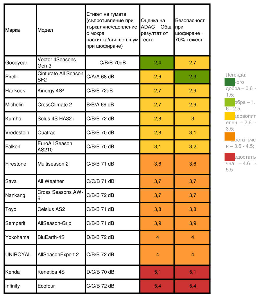 Резултати от Теста: Първа Оценка "Добър" за Всесезонна Гума
