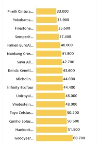 Модел ADAC обща оценка Сух път Мокър път Зимен път Шум, комфорт, пробег и др.